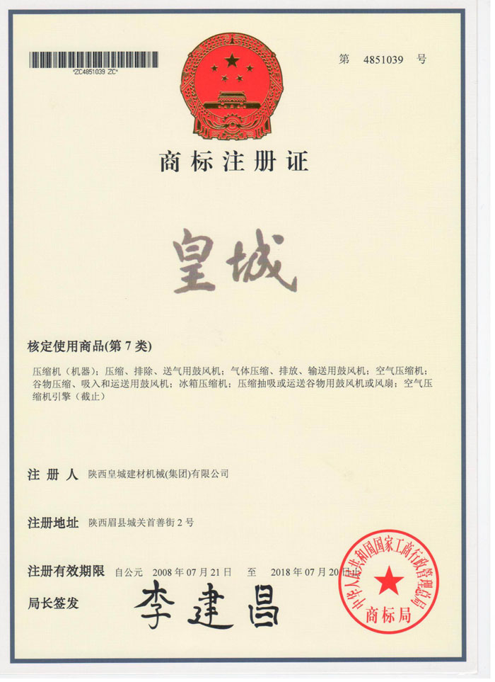 皇城商標注冊證