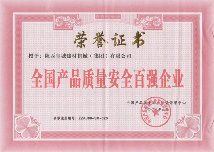 全國質(zhì)量安全百強企業(yè)