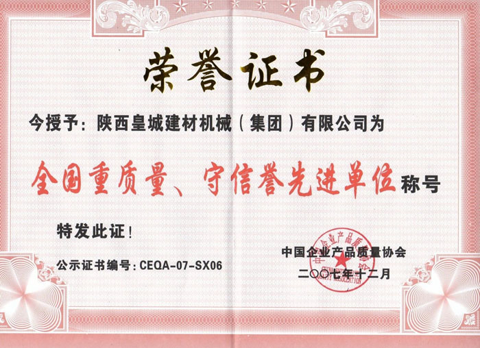 全國重質(zhì)量 守信譽先進單位.