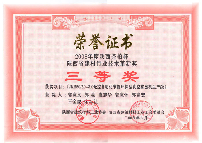 陜西省建材行業(yè)技術(shù)革新獎